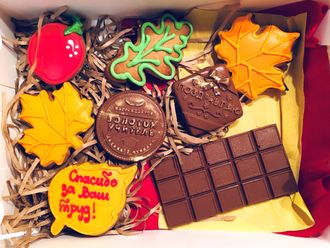 Набор имбирных расписных пряников с бельгийским шоколадом в подарочной коробке. Ручная работа. Эксклюзивный подарок к празднику
