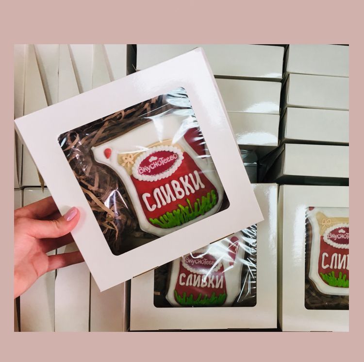 Пряник с логотипом компании 15см в коробке 20х20см